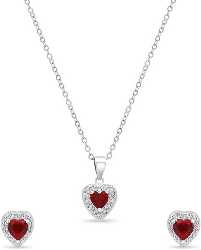 Shine brightly with this luxurious red heart-shaped The Lover's Gift silver jewellery set. Crafted from pure 925 sterling silver with embedded American diamonds they are timeless and unique gift items that never go out of style. They are timeless and unique gift items that never go out of style.