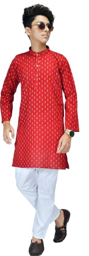 ZARTAJ Boys Festive & Party Kurta and Pyjama Set (Maroon Pack of 1)