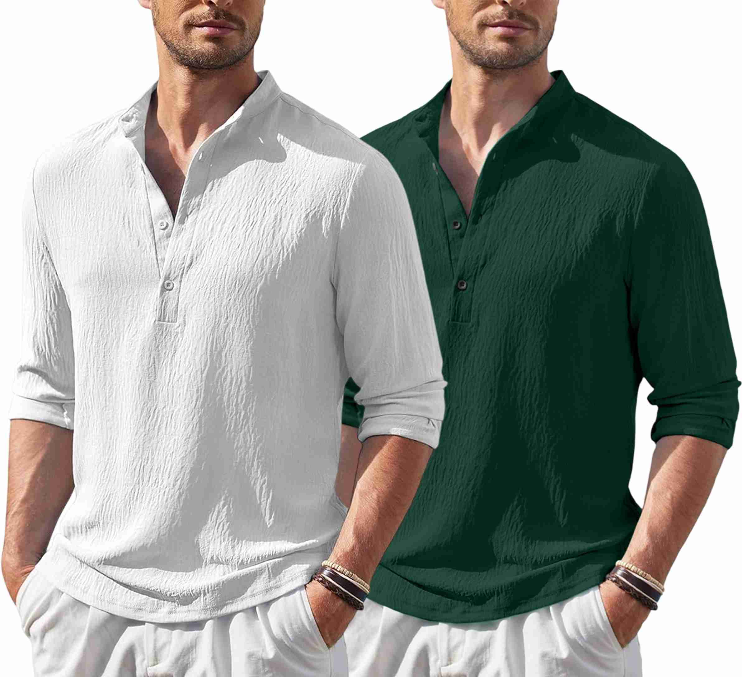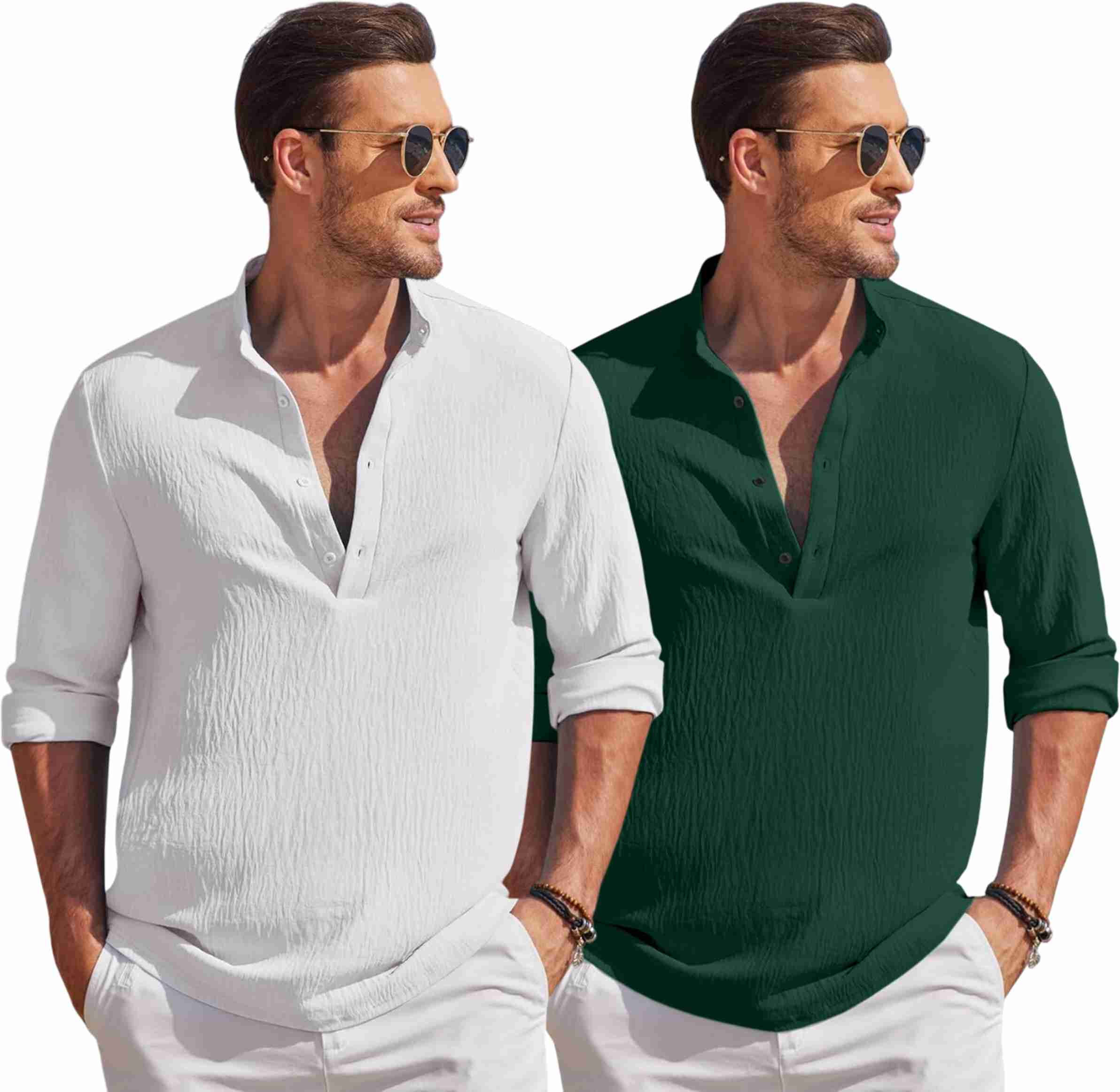 Pack of 2 Men Self Design Cotton Blend Straight Kurta (White, Dark Green)