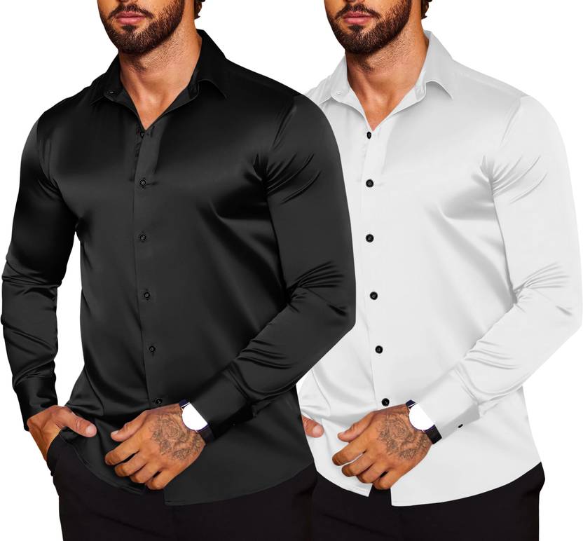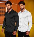 ZARTHA Men Solid Casual Black, White Shirt (Pack of 2)