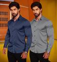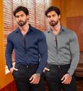 ZARTHA Men Solid Casual Dark Blue, Grey Shirt (Pack of 2)