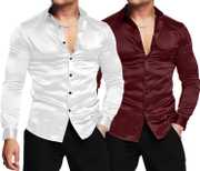 Make a bold style statement with this men’s solid satin shirt, designed for premium appeal and modern elegance. Crafted from high-quality satin fabric, this shirt offers a smooth, glossy finish that enhances its luxurious look while remaining soft and comfortable on the skin.