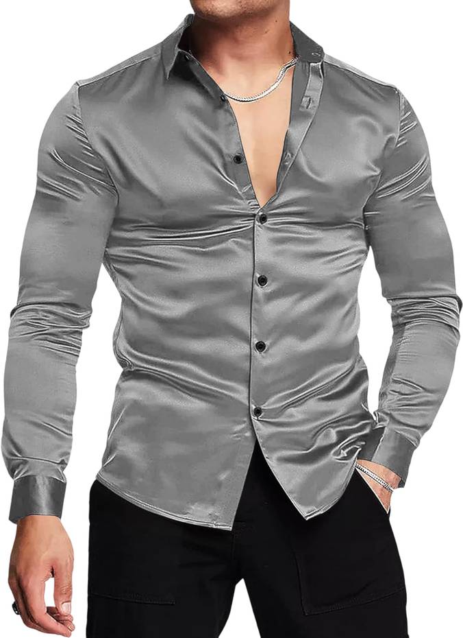 Make a bold style statement with this men’s solid satin shirt, designed for premium appeal and modern elegance. Crafted from high-quality satin fabric, this shirt offers a smooth, glossy finish that enhances its luxurious look while remaining soft and comfortable on the skin.