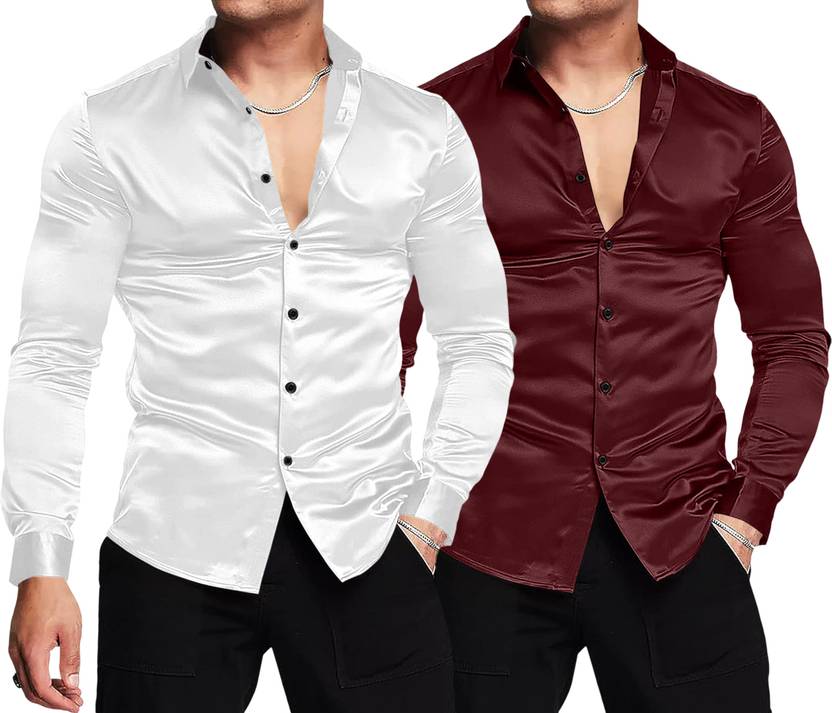 The solid pattern adds a refined and versatile appeal, allowing easy pairing with trousers, jeans, or formal pants. Whether styled buttoned-up for a sharp look or slightly open for a bold statement, this satin shirt is a must-have for men who prefer standout fashion with premium comfort.
