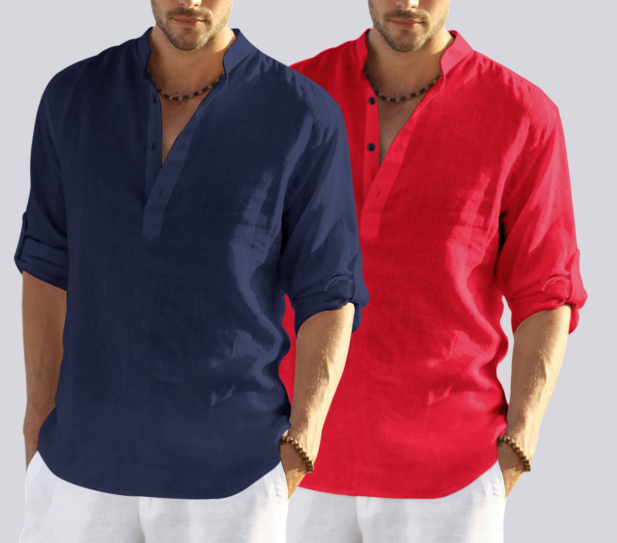 ZARTHA Pack of 2 Men Solid Cotton Blend Straight Kurta  (Dark Blue, Red)