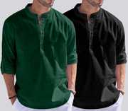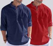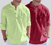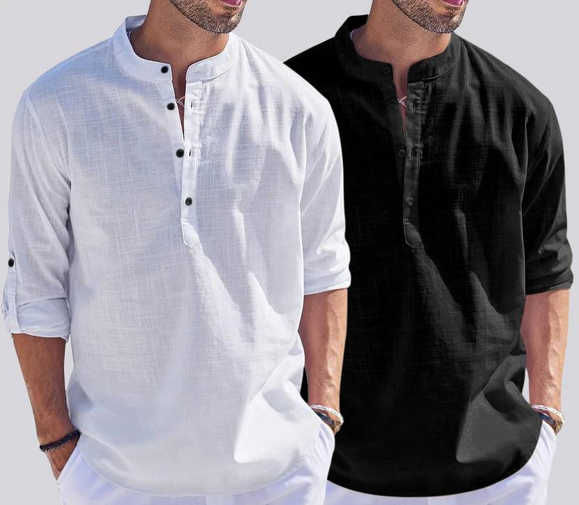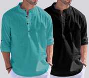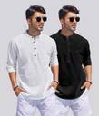ZARTHAย Pack of 2 Men Solid Cotton Blend Straight Kurtaย (Multicolor)