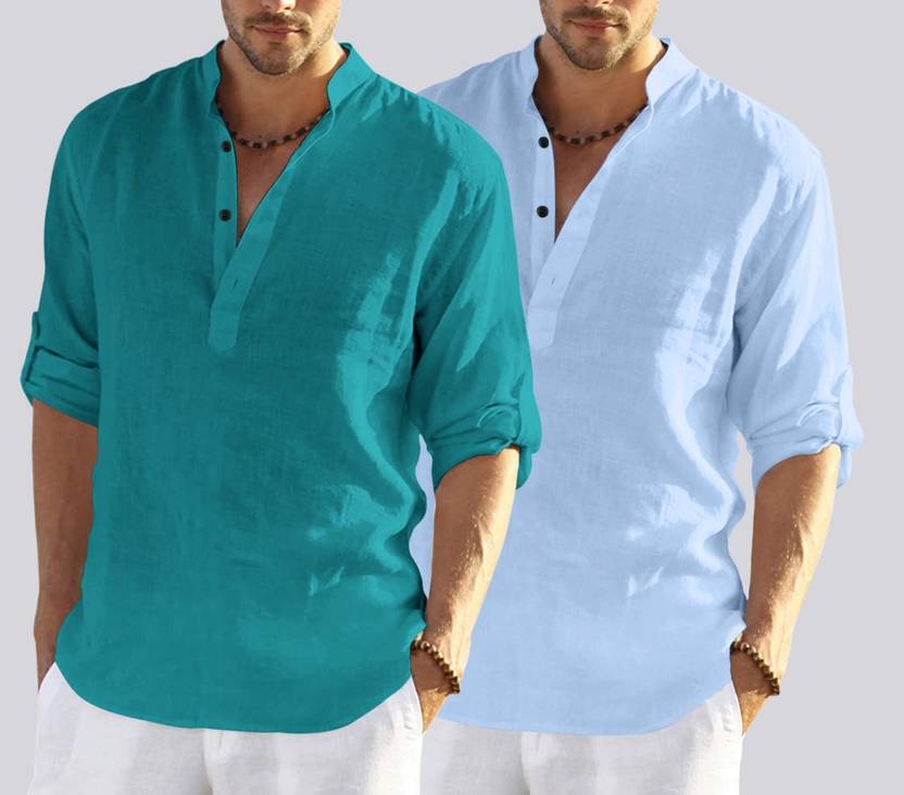 ZARTHA Pack of 2 Men Solid Cotton Blend Straight Kurta  (Light Blue, Dark Green)