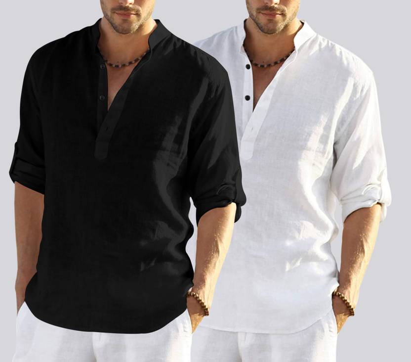 ZARTHA Pack of 2 Men Solid Cotton Blend Straight Kurta  (Black, White)