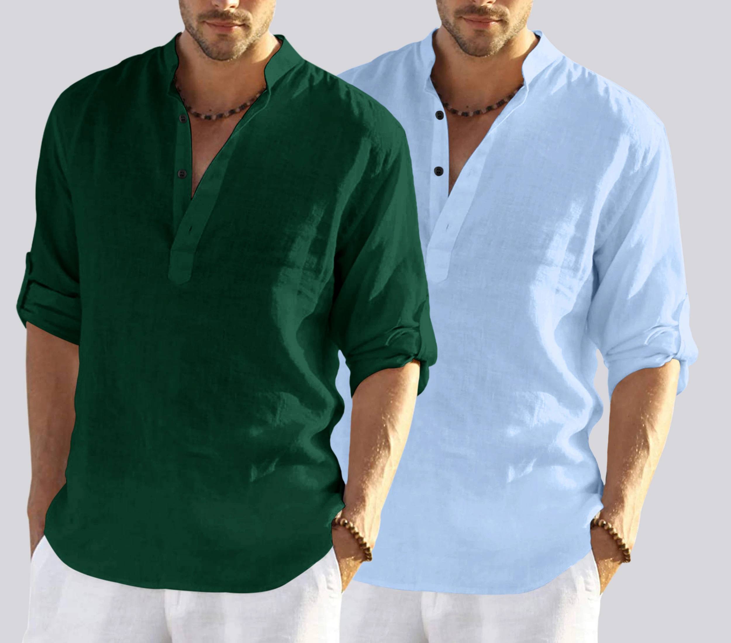 ZARTHA Pack of 2 Men Solid Cotton Blend Straight Kurta  (Green, Light Blue)