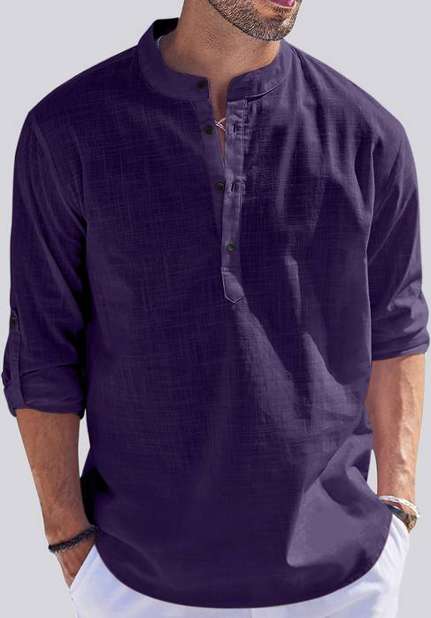 MADHAVISTA Men Solid Straight Kurta (Purple)