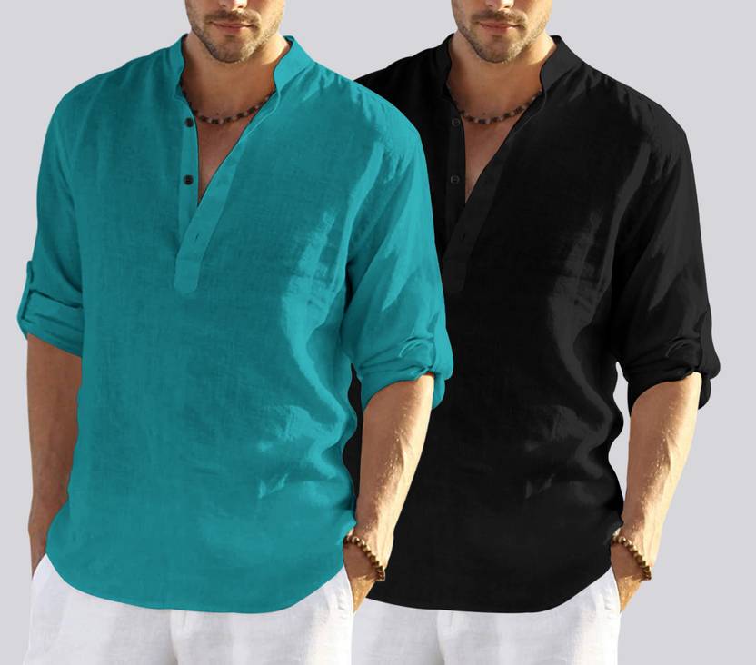 ZARTHA Pack of 2 Men Solid Cotton Blend Straight Kurta  (Dark Blue, Black)