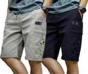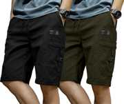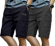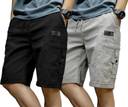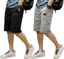 Pack of 2 Solid Men Black, Grey Cargo Shorts