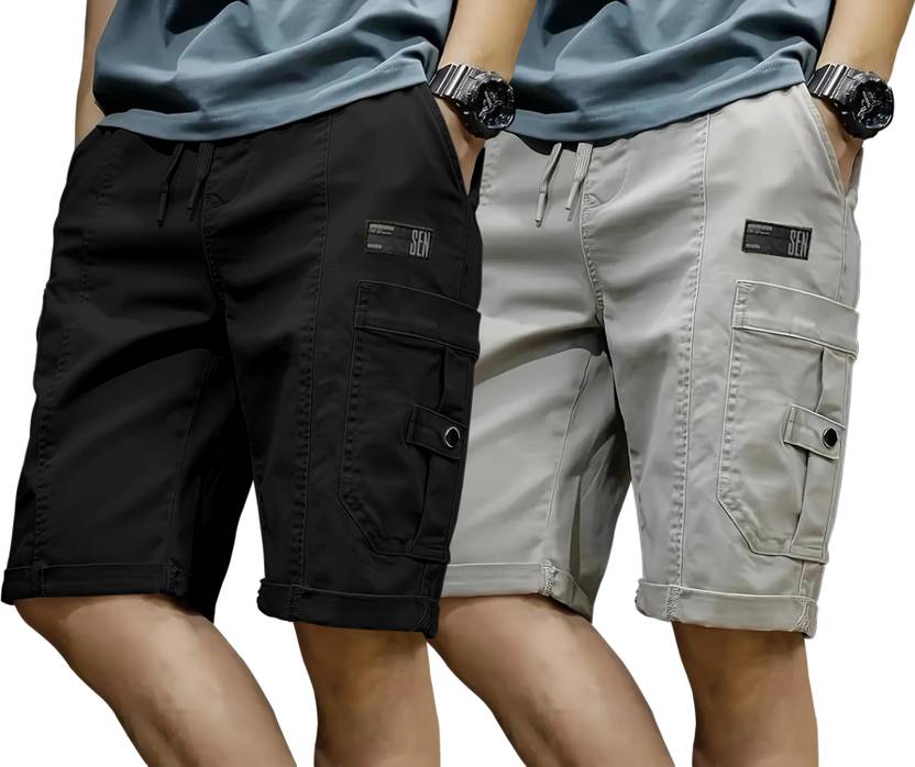 ZARTHA Solid Men Black, Grey Cargo Shorts