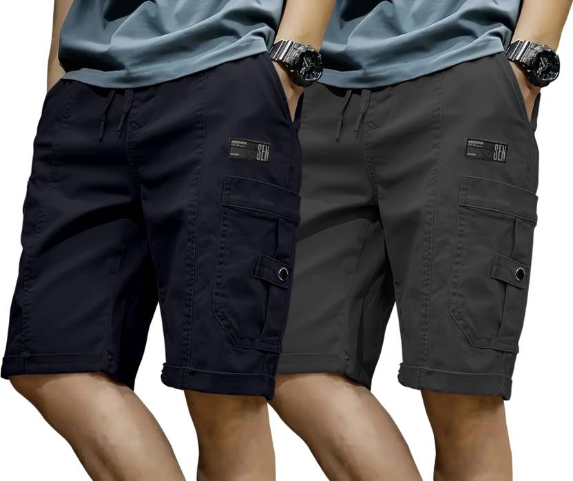 ZARTHA Solid Men Dark Blue, Dark Grey Cargo Shorts