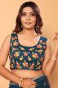 • It comes with a embroidered net fully stitched free size blouse with extra sleeves.,