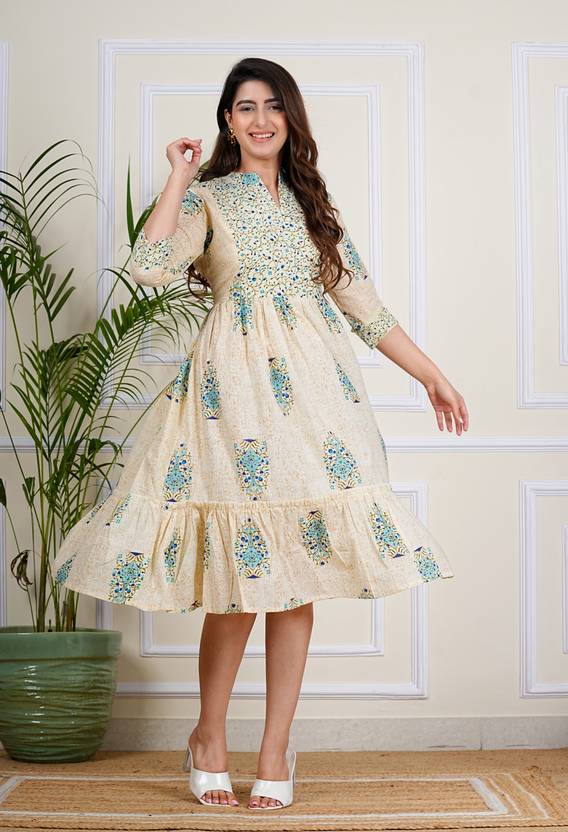 Cotton Printed Anarkali Kurta Dress is a must-have for any fashion-conscious woman. Made from soft and comfortable cotton fabric, this dress features a beautiful print that is sure to make a statement. The Anarkali style kurta dress is flowy and comfortable and perfect for any casual occasion. The dress comes with a full-length flare that adds elegance and charm to the overall look. The dress is perfect for everyday wear and is sure to become a staple in your wardrobe. It is available in various sizes and is perfect for any casual occasion.