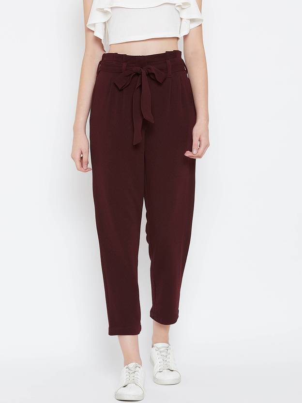 Zastraa Slim Fit Women Maroon, Maroon Trousers
