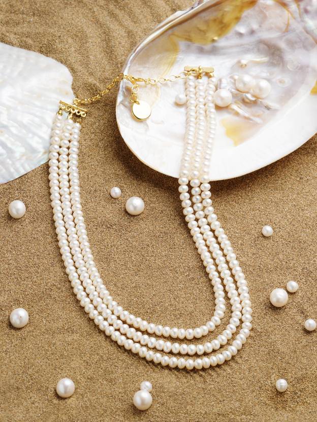ZAVERI PEARLS Fresh Water Button Pearls AAA+ Quality 3 Layers Necklace Pearl Gold-plated Plated Brass Necklace