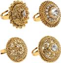 Accessorise your ethnic ensembles by wearing these ethnic rings from Zaveri Pearls to add a subtle touch of class. Team it with an Anarkali kurta and heels to match your stylish personality.Gold-toned adjustable rings, has a floral detail with a stone-studded detail on the centre.