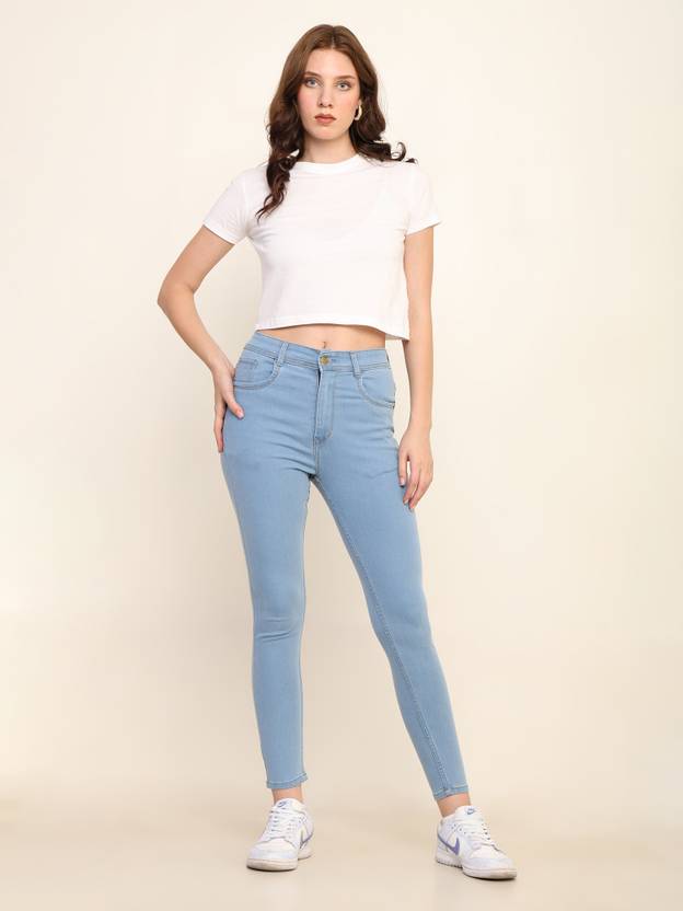 This Zayla Light Blue high waist skinny fit jeans with comfort look uniquely designed Product is made of Cotton Lycra Fabric very fine quality material and comes in various ranges & varieties and hence fulfills the need of all.It is very comfortable to wear whole day and also comfy for travelling and outing. From Zayla you will get always quality products. Jeans have useful 2 front pockets and 2 back pockets and also stretchable, soft and skin friendly material.Kindly check the size chart before buying.