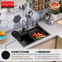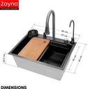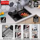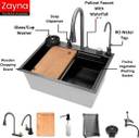 Zayna 24X18 Waterfall Kitchen Sink (304 Grade) With Pullout Waterfall Faucet & Glass Washer & Soap Dispenser & RO Water Faucet (Anti-Scratch) (Anti-Stain) Vessel Sink (LUXURY BLACK)