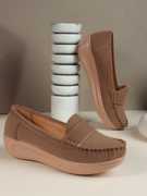 Experience ultimate comfort with these versatile women's loafers that seamlessly blend style and functionality. The slip-on design features Fox leather construction with classic penny loafer styling and meticulous stitching details. The cushioned footbed provides all-day comfort, while the platform sole offers excellent support for extended wear. These sophisticated loafers are perfect for various occasions - from office wear to casual outings. The neutral taupe colour complements any outfit, making them a wardrobe essential. The durable construction ensures longevity, while the lightweight design prevents foot fatigue. These versatile shoes are ideal for walking, driving, shopping, or standing for long hours. The classic moccasin-style stitching adds a touch of elegance, making these loafers suitable for both formal and casual settings. Available in multiple sizes, these shoes offer a comfortable fit for everyday wear.