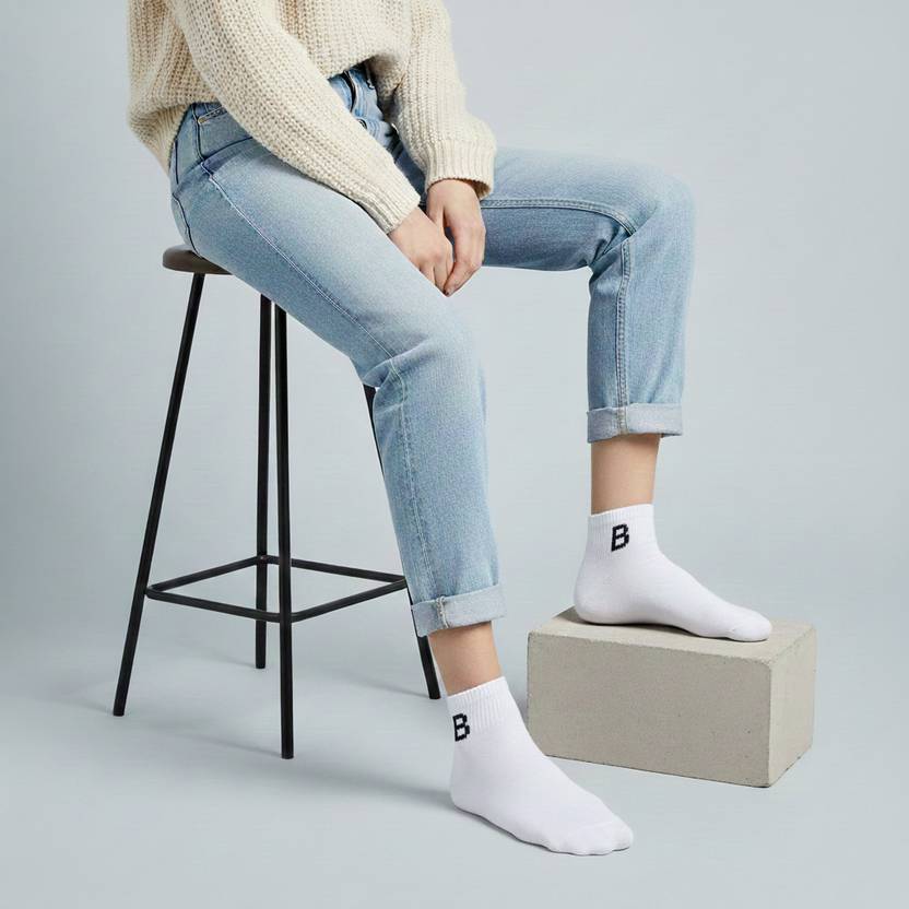 Premium Cotton-Blend Fabric for soft and breathable feel, Trendy Alphabet Letter Design for modern street style, Ankle-Length Cut suitable for shoes & sneakers, Stretchable Knit for comfortable all-day fit, Alphabet letter design, breathable fabric, soft elastic grip
