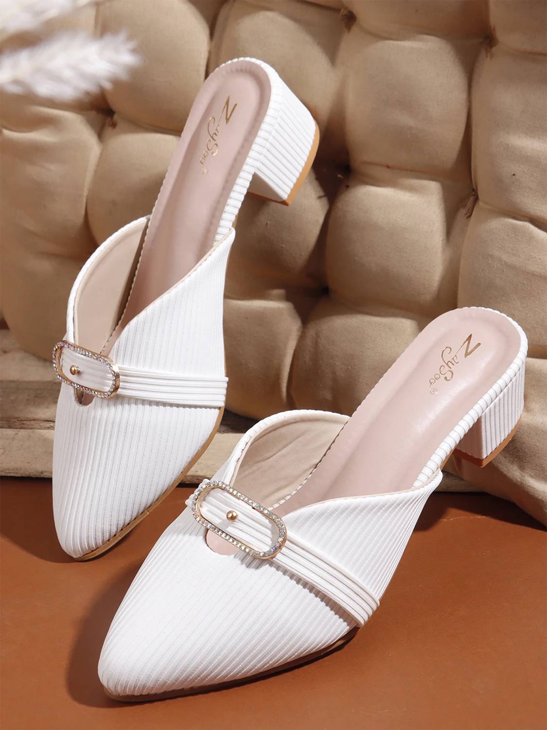 zaysoo Women Heels (White , 4)