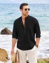Men's Casual Solid Black Henley Shirt with Mandarin Collar