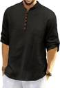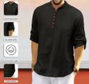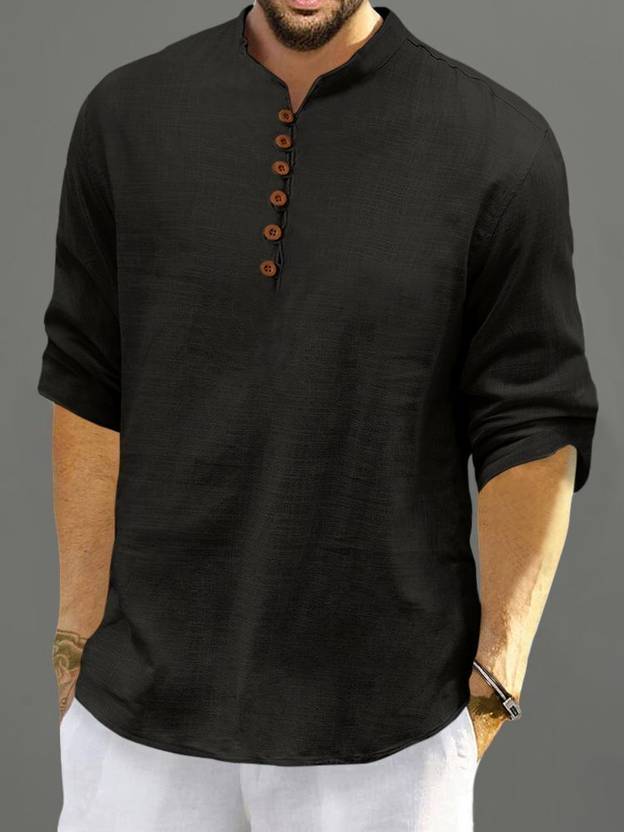 Men’s Casual Linen Blend Kurta Shirt with Wooden Buttons & Mandarin Collar