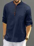 Men's Casual Solid Henley Shirt with Mandarin Collar
