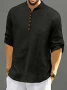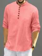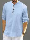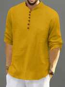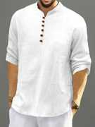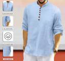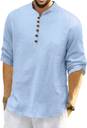 Men’s Casual Linen Blend Kurta Shirt with Wooden Buttons & Mandarin Collar