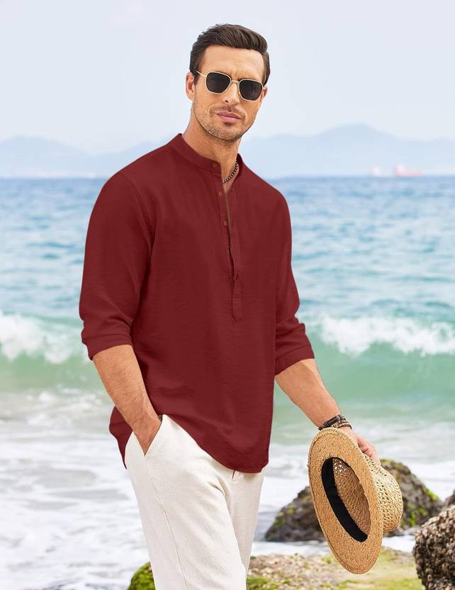 Men's Casual Solid Henley Shirt with Mandarin Collar