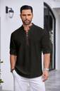 Men’s Split Neck Casual Shirt with Wooden Buttons & Rolled-Up Sleeves
