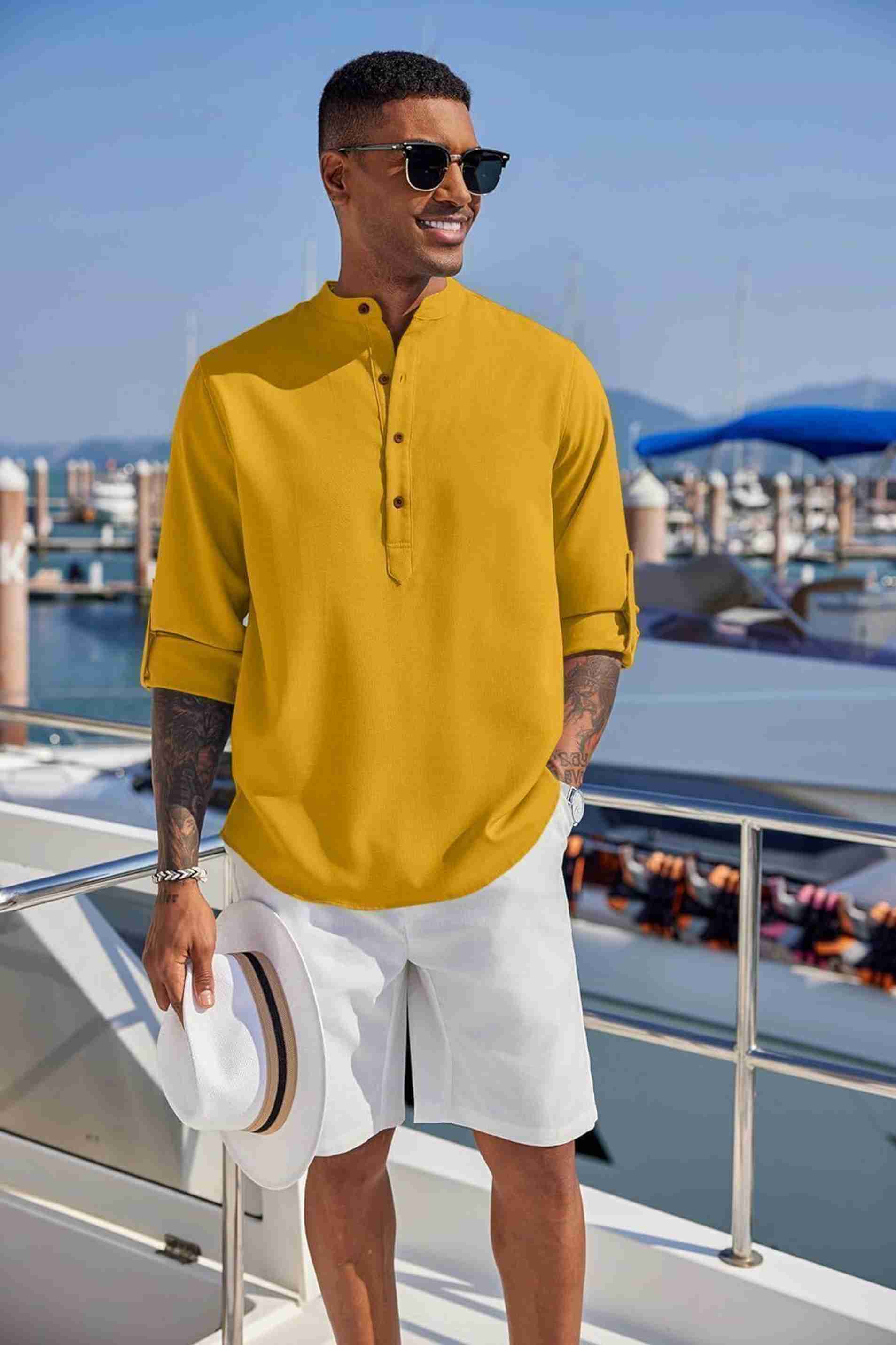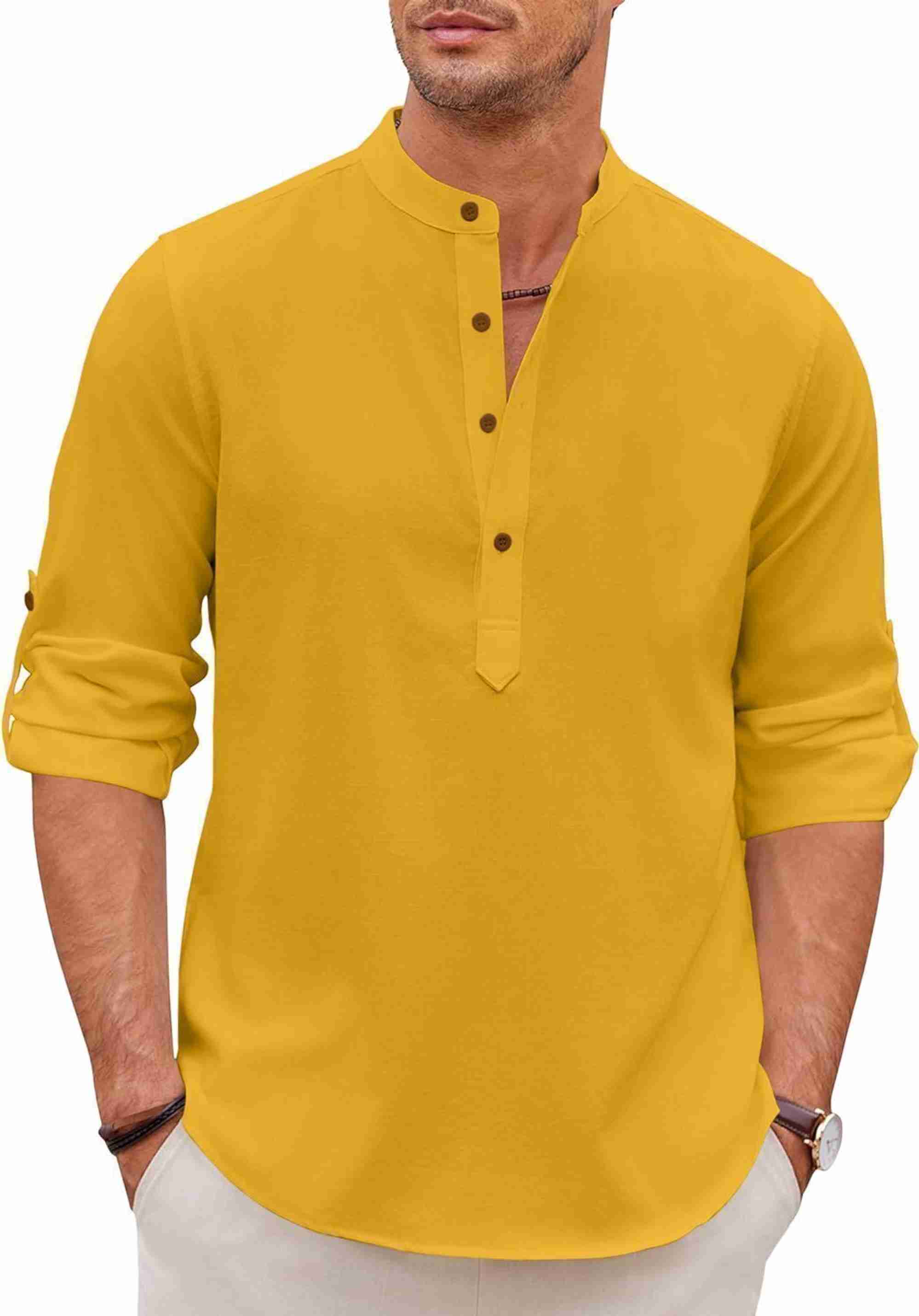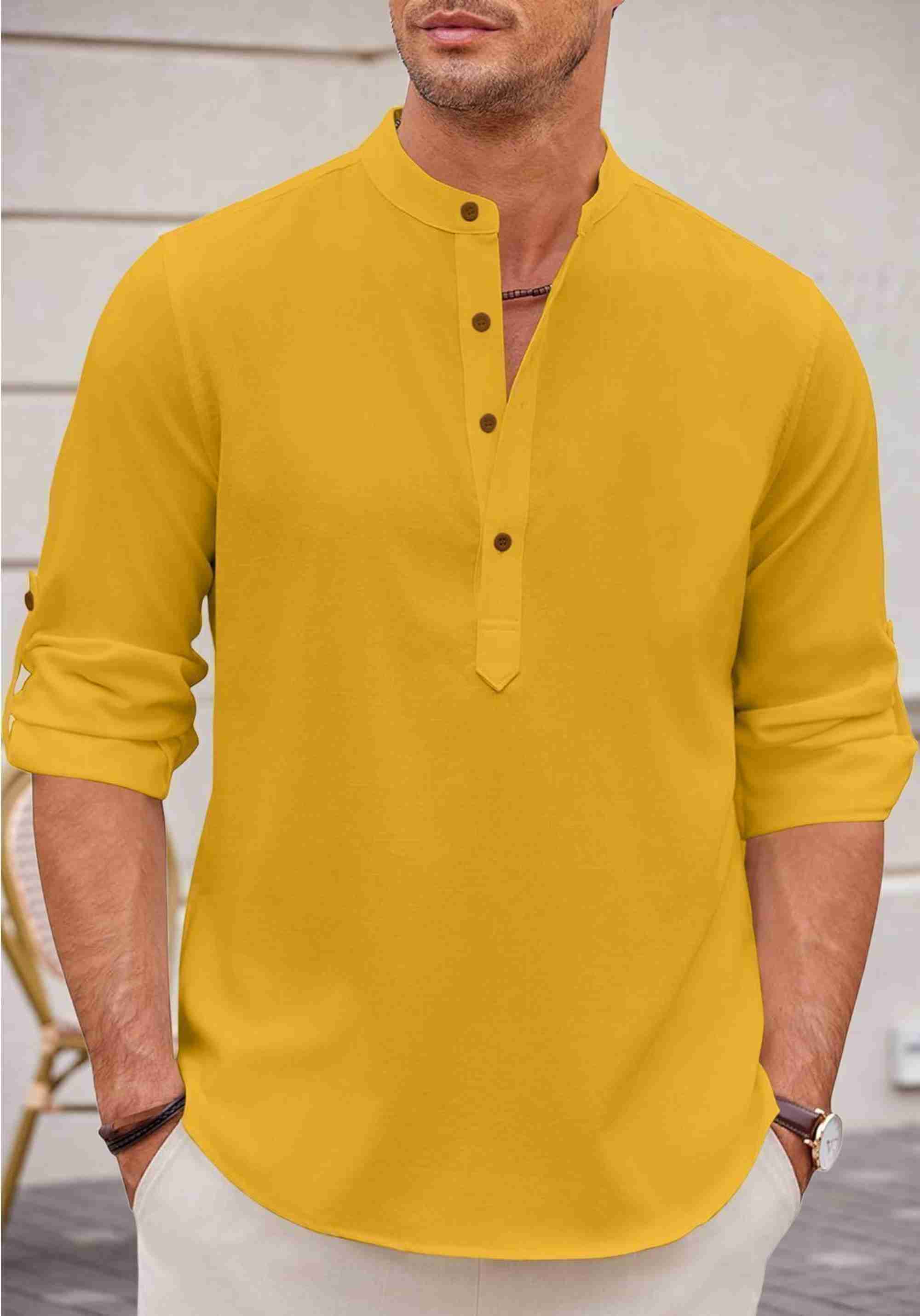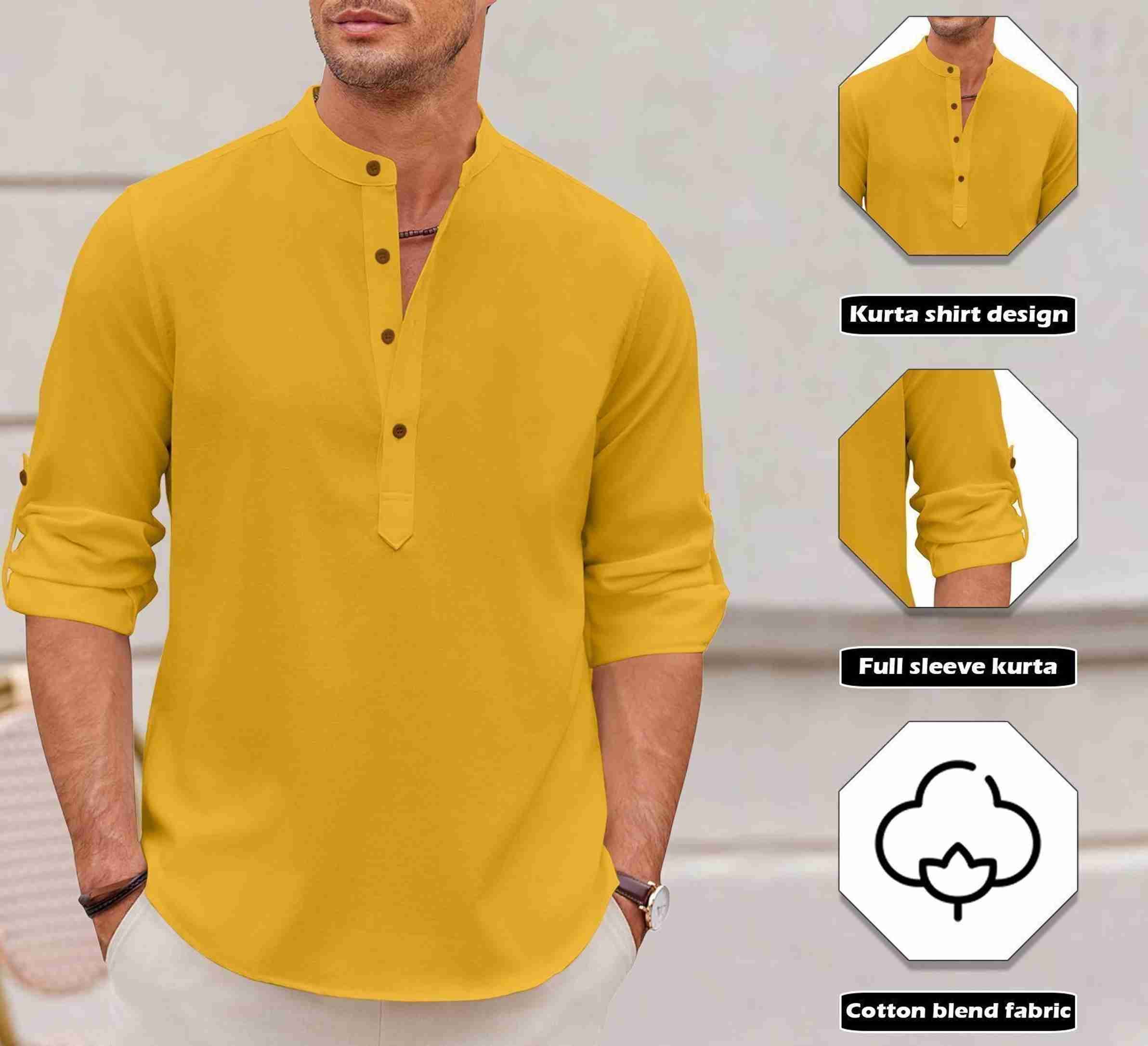 Men Solid Cotton Blend Straight Kurta (Gold)