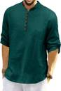 Men’s Casual Linen Blend Kurta Shirt with Wooden Buttons & Mandarin Collar
