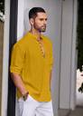 Men’s Split Neck Casual Shirt with Wooden Buttons & Rolled-Up Sleeves