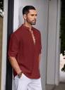 Men’s Split Neck Casual Shirt with Wooden Buttons & Rolled-Up Sleeves