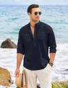 Half Button Placket, Band Collar, Chest Pockets, Pintuck Details