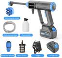 The Cordless Pressure Washer offers the convenience of portability without compromising on performance, providing powerful and efficient cleaning anywhere you need it. The portable pressure washer max 150 PSI water pressure, and the flow rate is 4L/Min. Powerful enough for efficient and fast cleaning. Equipped with high-capacity 6000mAh rechargeable battery, the Cordless Pressure Washer provides extended usage time, ensuring you can clean multiple areas without worrying about running out of power. The battery power is 300W and lasts up to 40 minutes. The body is made of special material waterproof, water and electricity isolation safer
