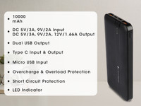 Charge your devices quickly and conveniently even when you are travelling, with the 10000 mAh Zebronics ZEB-MD10000Q powerbank. Offering an output power of about 20 W, this powerbank lets you rapidly charge your compatible smartphone or tablet. Featuring a versatile Type-C input/output port, this powerbank lets you charge a compatible device or the powerbank itself with ease. Moreover, its built-in protection features shield it from issues such as power surges, overcharging, and short circuits.