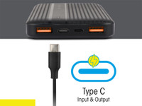 This powerbank has a versatile Type-C input and output port that allows you to efficiently charge a compatible device or the powerbank itself.