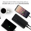 Built with a capacity of 20000 mAh, the Zebronics ZEB-MD20000Q powerbank helps you keep your devices charged. You can take this powerbank with you to any function or official event, thanks to its stylish design.