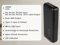 This powerbank has a versatile Type-C input and output port that allows you to efficiently charge a compatible device or the powerbank itself. Moreover, a dedicated micro-USB input port lets you charge this powerbank too, while its dual USB output ports allow you to simultaneously charge two devices.