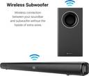 This soundbar is powered by a digital wireless subwoofer and 4 high-fidelity drivers that provide a theatre-like sound experience while eliminating the hassle of wired connections.