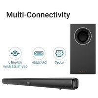 This Zebronics Bluetooth soundbar is here to give you a heightened music experience. Powered by 4 High-fidelity Drivers and a Digital Wireless Subwoofer, you enjoy a cinematic sound experience in the comfort of your home. It comes with Multiple Connectivity options, such as Bluetooth mode, USB, AUX, HDMI (ARC), and optical to enable convenient use.