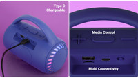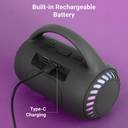 Built for endurance, the speaker offers up to 18 hours of playback, letting you enjoy long playlists, podcasts, and casual sessions without frequent charging. It includes a built-in rechargeable battery and convenient Type-C charging, making it easy to power up anytime. Whether used indoors or on the move, it stays ready for hours of enjoyment.