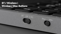 The keyboard features dedicated toggle buttons for effortless switching between Windows and Mac software, as well as between Bluetooth and 2.4GHz wireless connectivity.