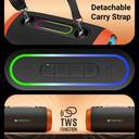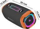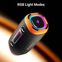 The speaker's vibrant look is enhanced by RGB LED lights, facilitating various lighting modes for a dynamic visual experience.