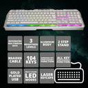 This combo features a 104-key gaming keyboard equipped with integrated multimedia keys, a convenient all-keys enable/disable function, and durable laser-etched keycaps. To complement this, it's paired with a high-precision mouse offering up to 3200 DPI, ensuring unmatched control and accuracy during gameplay.